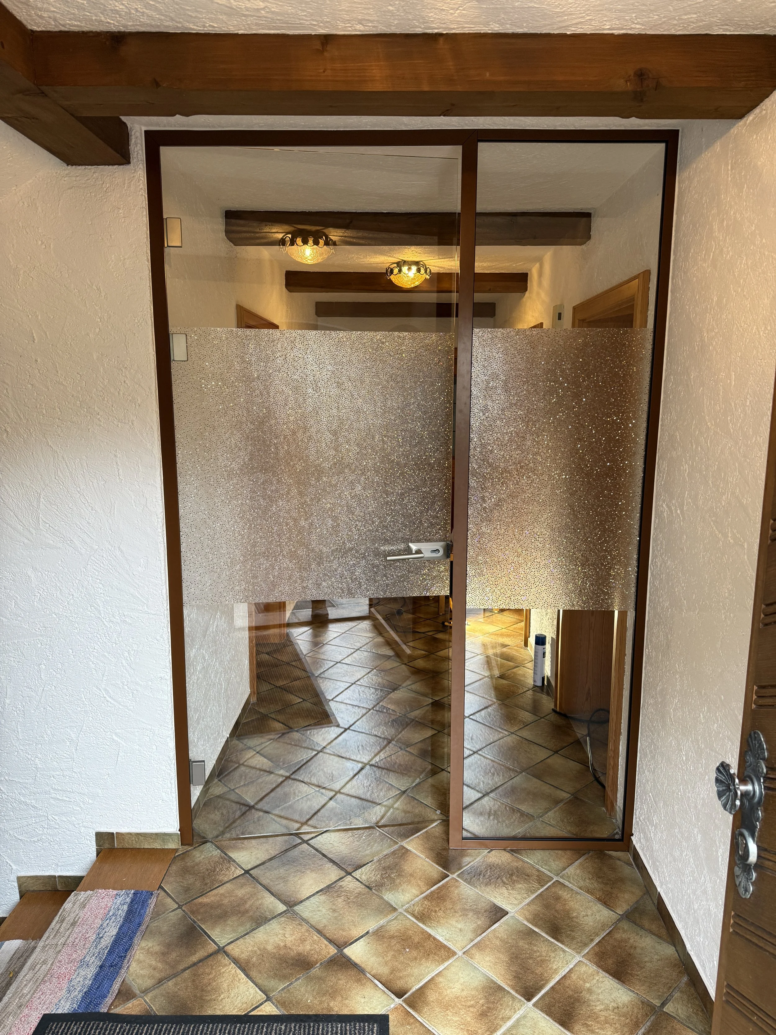 Maßanfertigung: exakte Anpassung an Öffnungsmaß, Glasstärke und Rahmen.